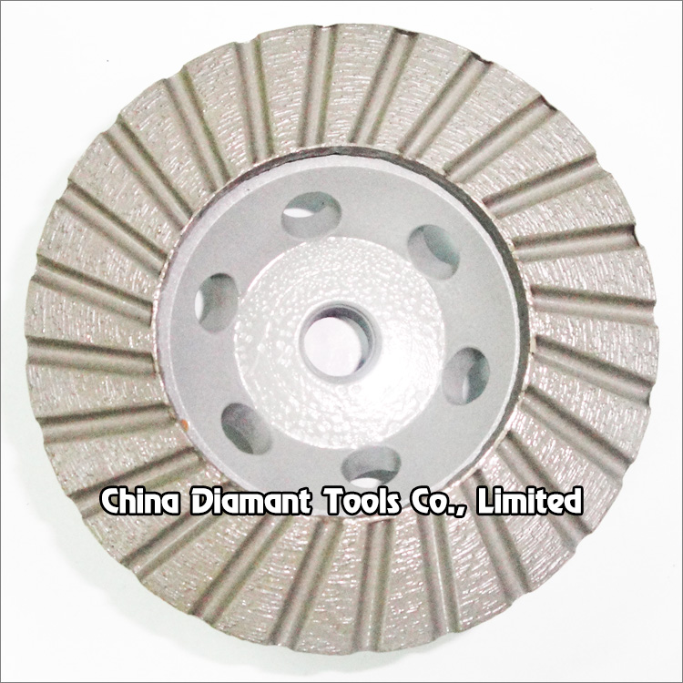 Diamond cup wheels with straight turbo continuous rim segments for grinding various stone such as granite marble, sandstone, limestone, artificial stone, etc., ideal for smoothing and shaping as well as stock removal.