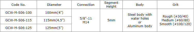 The hot-press sintered segments offers efficient and steady performance, #30 for the first step coarse grinding, #60 for the medium next step, #100/120 for fine grinding, Grit #100/120 diamond grits provide great finishing and much longer working life.