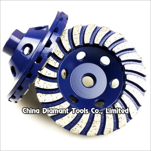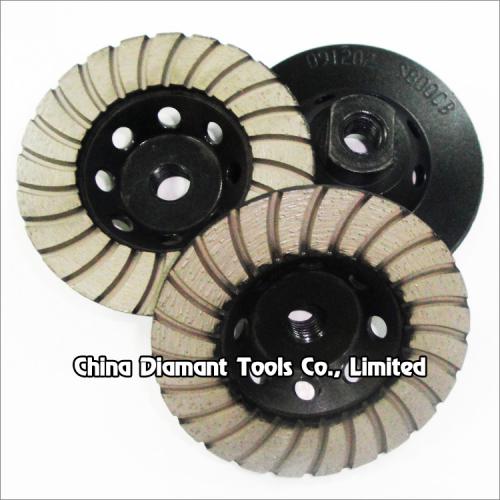 Diamond cup wheels with turbo wave continuous rim segments for grinding various stone such as granite marble, sandstone, limestone, artificial stone, etc., ideal for smoothing and shaping as well as stock removal.